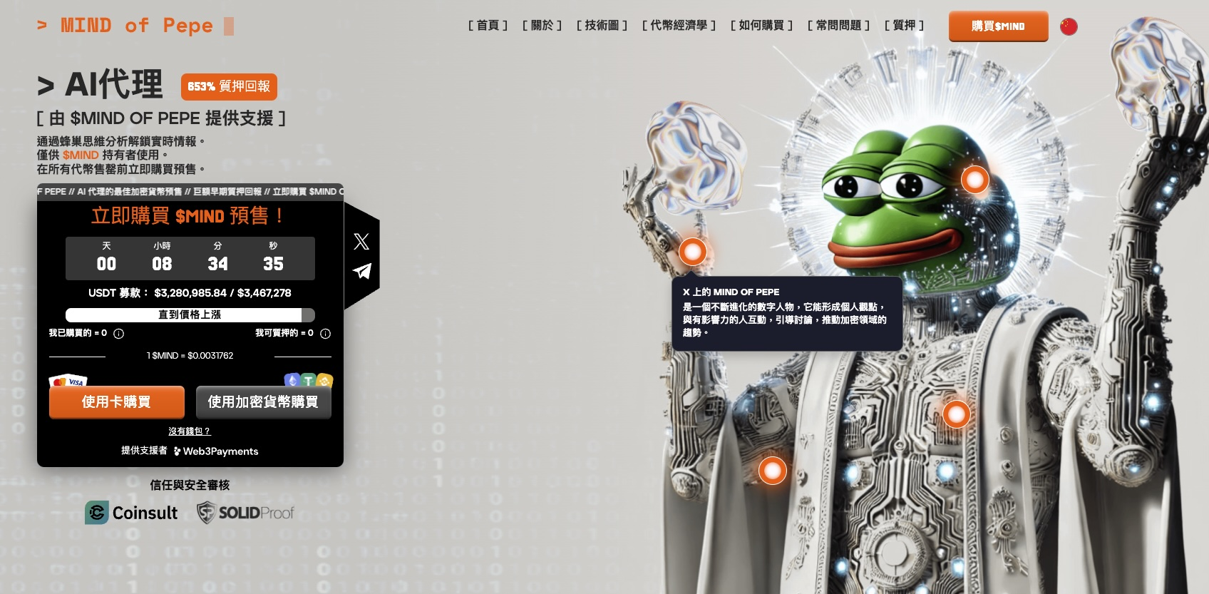 目前,$MIND代幣預售設計旨在為早期支持者提供不僅僅是代幣,還包括參與項目創新願景機會。作為一個具有自主運行能力AI代理,MIND of Pepe能夠主動參與討論、引發新議題並形成獨立見解。這意味著$MIND代幣持有者將能比其他市場參與者更早獲取關鍵市場訊息和資料,從而最大化回報潛力。