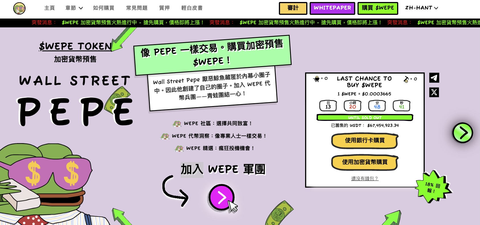 要留意,$WEPE仍在預售階段,在預售結束後再上市DEX及CEX,建議投資者可進入官方網站、X及Telegram瞭解預售最新資訊。