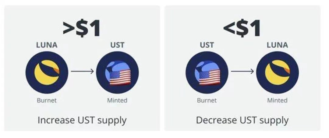 2. UST和Luna是“雙向銷毀鑄造”的關係。意思是,當你在用Luna換UST時,市場上就少了一美元的Luna多了一個UST,當用UST換Luna時,市場上就少了一個UST。