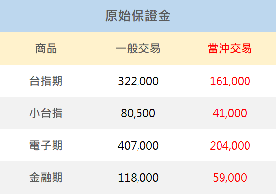 當沖保證金減半收取:原始保證金(50%)減收後,取千元整數進位訂定之