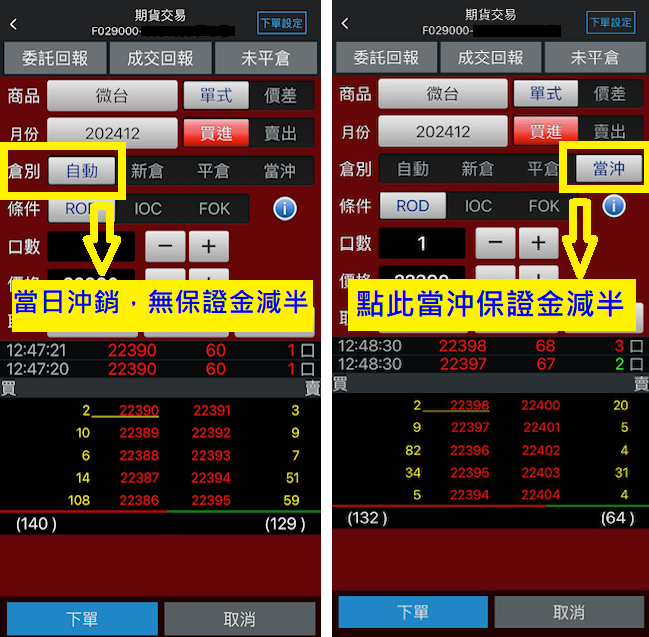 另一種當沖指的是在交易期貨時,勾選當沖保證金減半,即可用原始保證金約當一半的保證金進場交易。在交易期貨時,倉別勾選「當沖」,那麼就是使用期貨保證金減半的功能了,這個需要符合條件後另外申請,本篇文章將為您介紹什麼期貨當沖保證金減半。