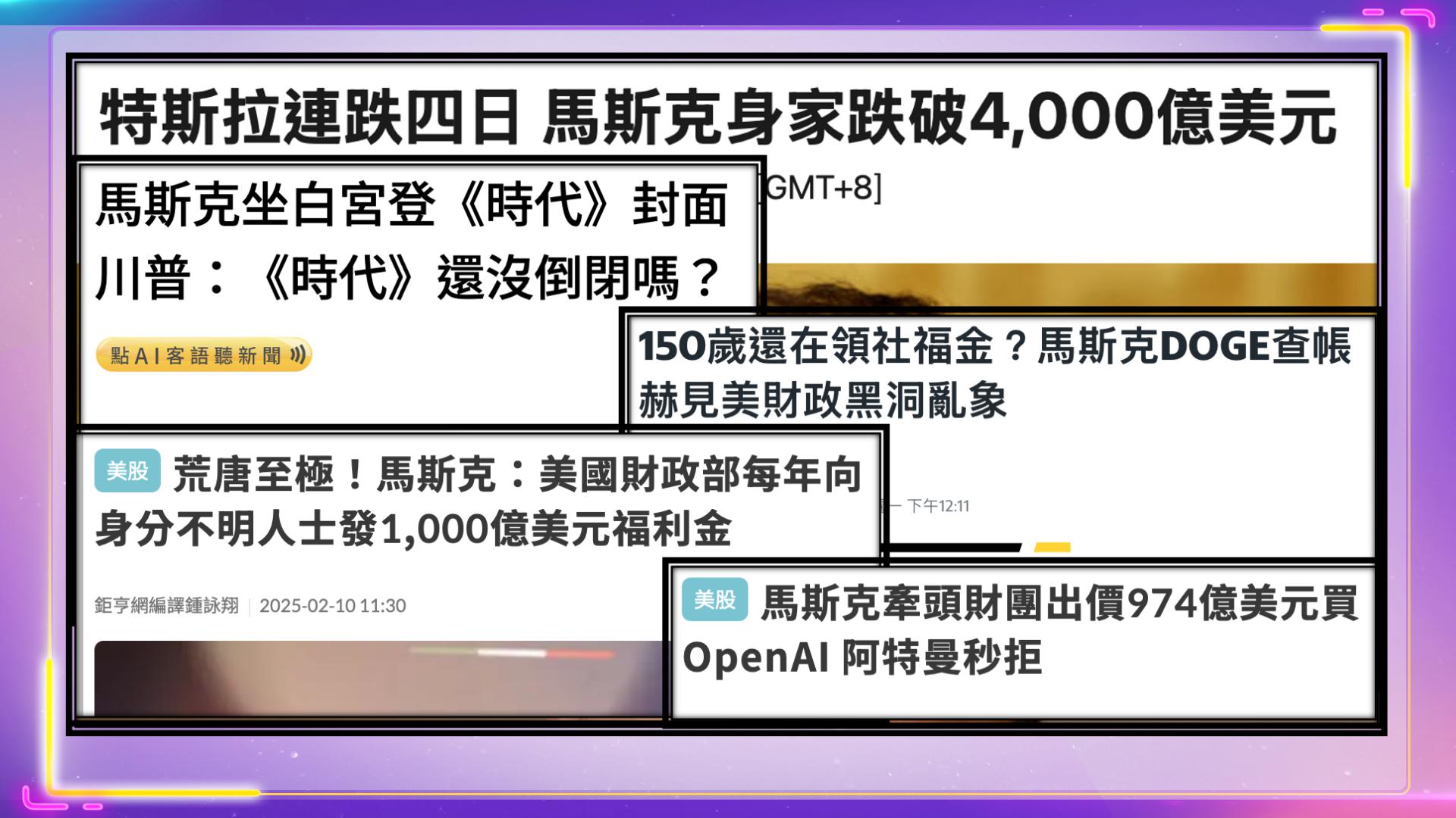 馬斯克近日對聯邦政府「查帳」,赫然發現黑幕重重,財政部每年向身份不明個人發放超過1千億美元福利金,此外還有12個「150歲老人」領取社會保障金。
