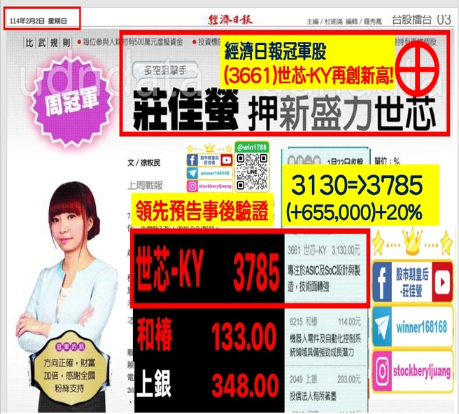 全數領先預告後改寫新高!逆勢大盤強勢表態!驗證佳螢的選股實力!