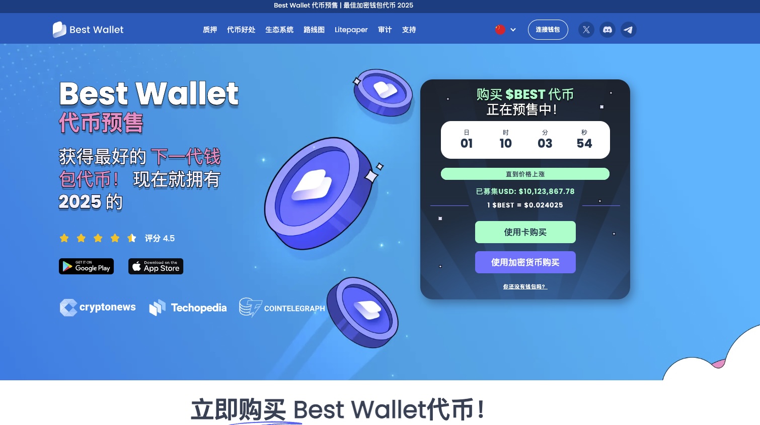 Best Wallet實用型代幣$BEST在2025年加密市場中異軍突起。這款專為多鏈操作設計加密錢包,不僅支援超過50條主流區塊鏈,還提供多項創新功能,使其成為投資者理想工具。 $BEST在預售階段已籌集1000萬美元,吸引了超過100萬用戶關注。
