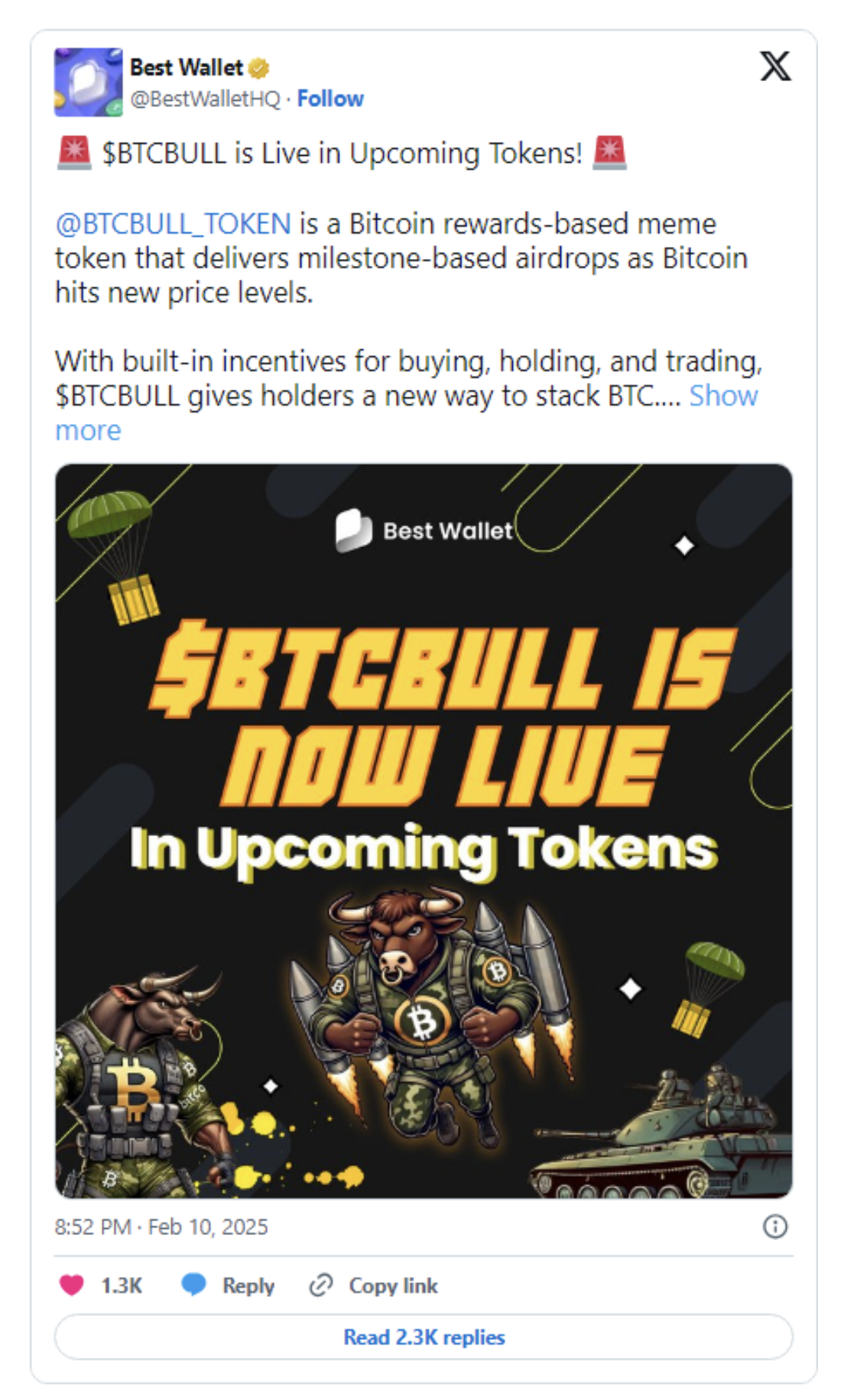 這也是為什麼 Best Wallet——頂級 Web3 非託管錢包,將 BTC Bull Token 列為 Upcoming Tokens,並認可其潛在爆發力。