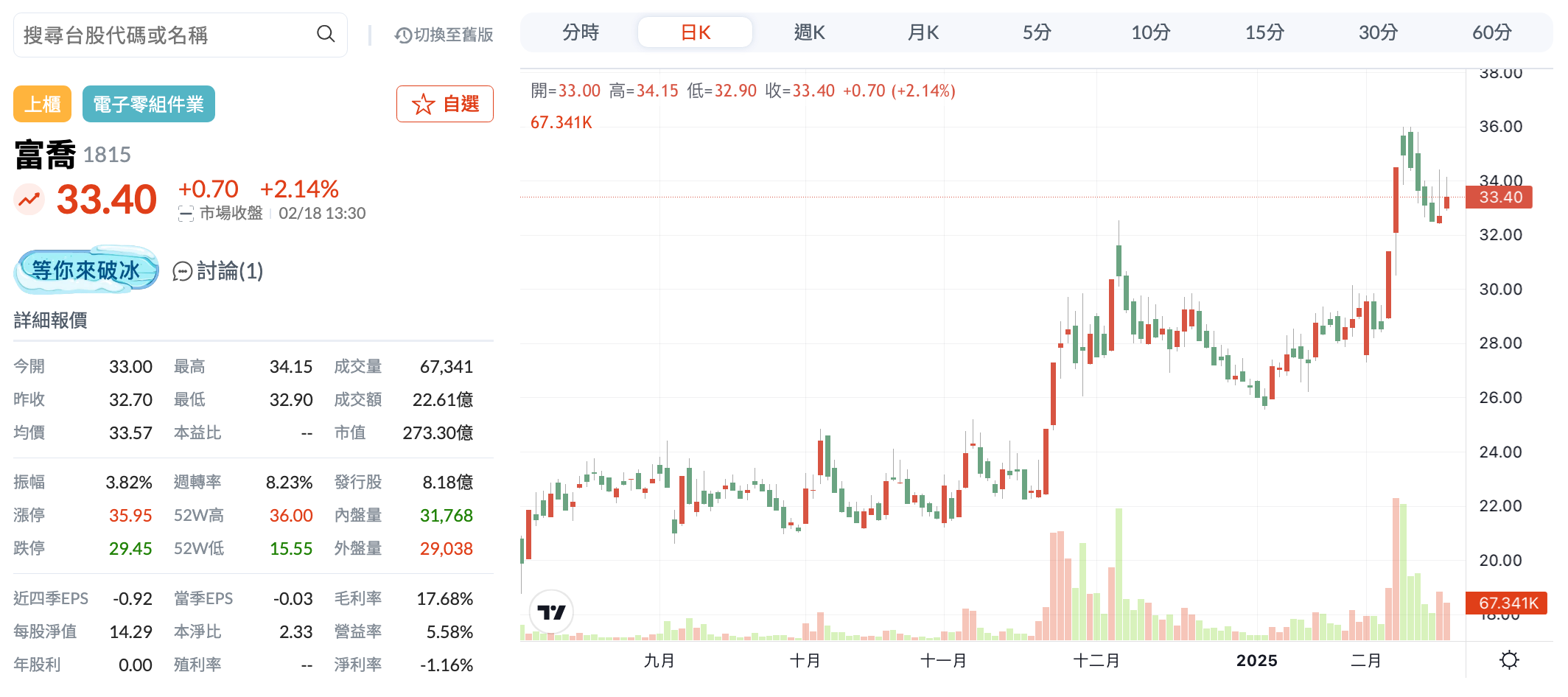 📕 股價34.5(2/7收盤價)
