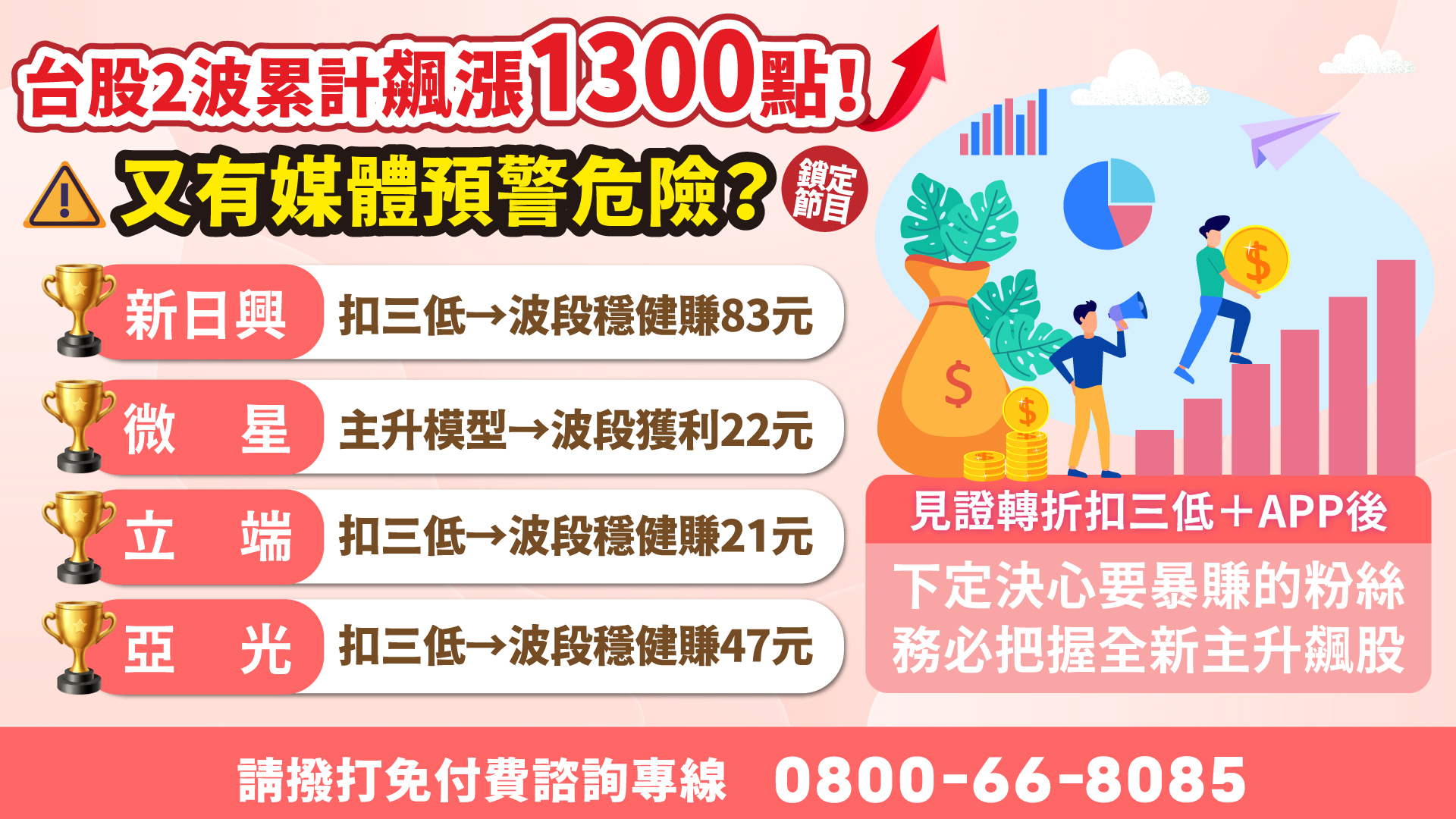 2/20(四)台股2波累計飆漲1300點!又有媒體預警危險?