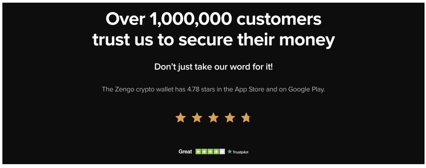 Zengo行動BTC錢包在Trustpilot上獲得了4.2顆星的評價,來自600多名顧客的評價。它適用於iOS和Android,並在Apple App Store和Google Play Store上獲得了4.78/5的評分。 Zengo為客戶提供全天候的支持,而專業版客戶(年費69.99美元)享有優先支持,保證在1小時內回复,但通常在5分鐘內回复。