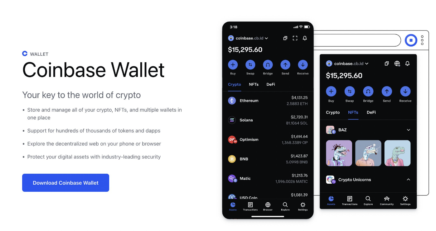 Coinbase Wallet是一個適用於 iOS 和 Android 裝置的去中心化錢包應用程式。這個錢包與主要的 Coinbase 交易所完全獨立 – Coinbase 交易所是中心化的。因此,Coinbase Wallet 用戶完全掌握他們的加密貨幣和私鑰。
