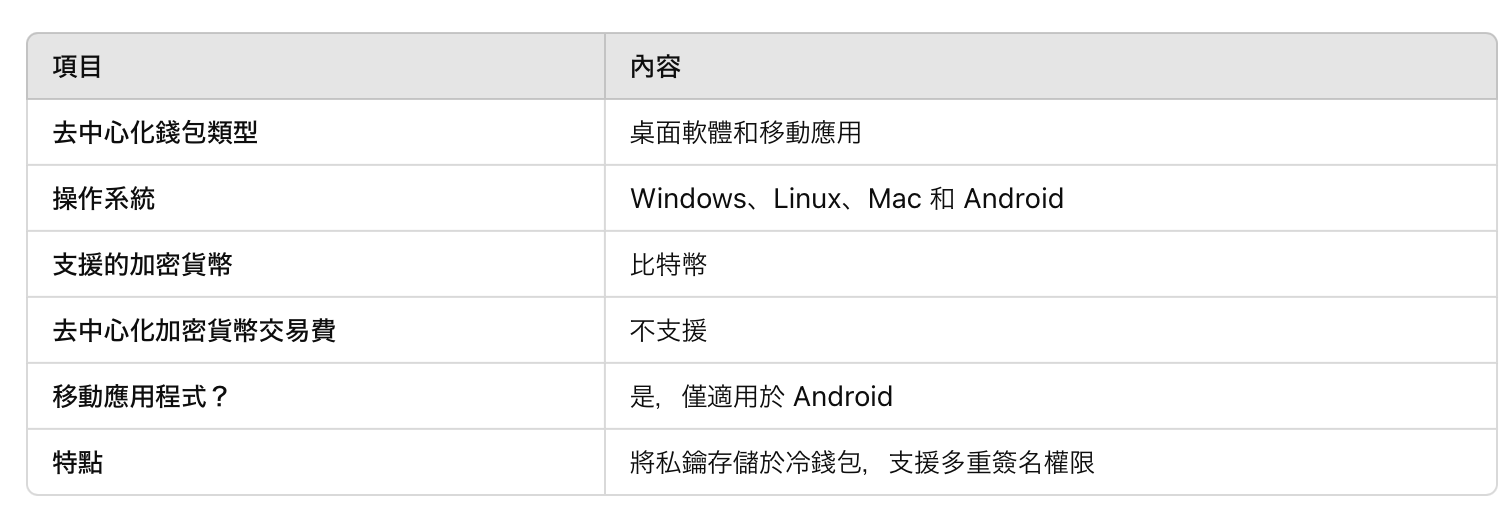 那些希望在筆記型電腦或個人電腦上儲存比特幣的人可能會認為 Electrum 是最佳的去中心化錢包。它相容於 Windows、Linux 和 Mac,並且完全免費使用。 Electrum 是最早成立於 2011 年的比特幣錢包之一。