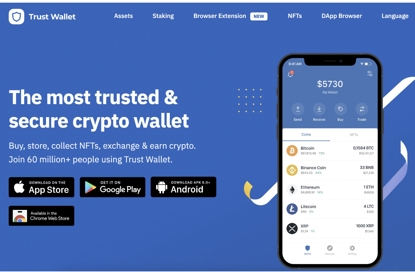 Trust Wallet 可以作為應用程式或瀏覽器擴充功能。支援的作業系統包括 iOS、Android 和 Chrome。該錢包可以免費下載,並支援超過 70 個區塊鏈。據 Trust Wallet 稱,這意味著支持超過 450 萬個數位資產。