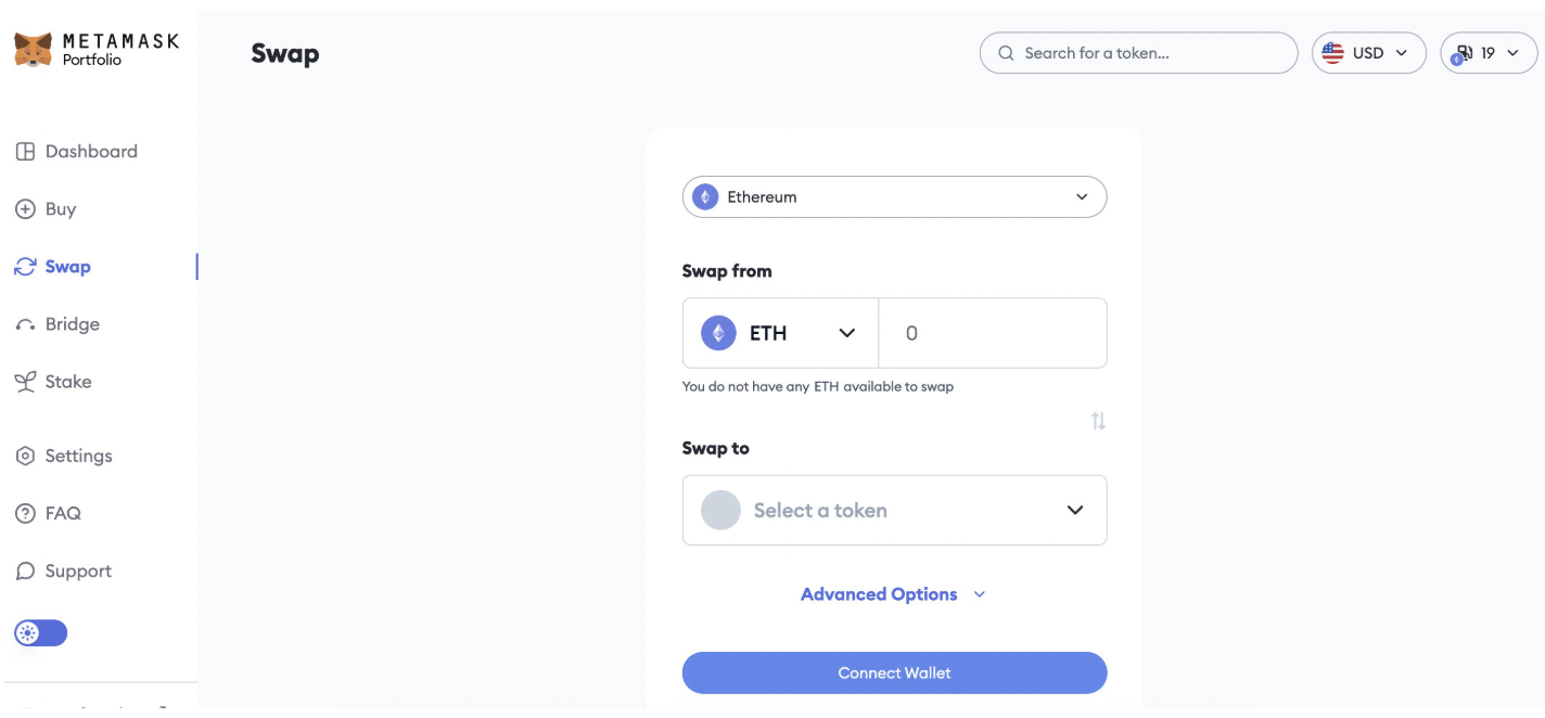 MetaMask 還提供了一個內建的代幣交換工具。這使用戶可以在不經過中心化交易所的情況下交易代幣。所有支援的網路標準都相容。然而,再次強調,當連接到像 UniSwap 或 PancakeSwap 這樣的 dApp 時,通常可以獲得更好的匯率。