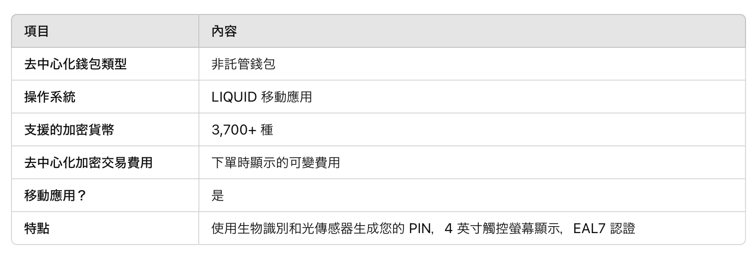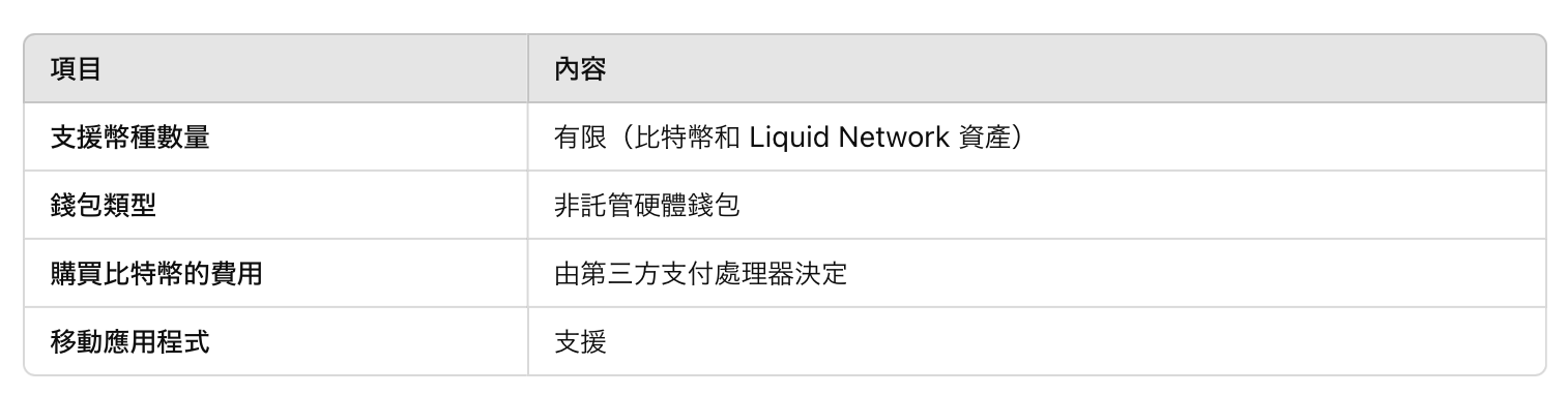 然而,其對比特幣和Liquid Network資產的專屬支援可能會限制其對多元化投資組合用戶的吸引力。此外,它依賴遠端安全元素且僅相容於安卓設備,這對某些用戶來說可能是不利因素。