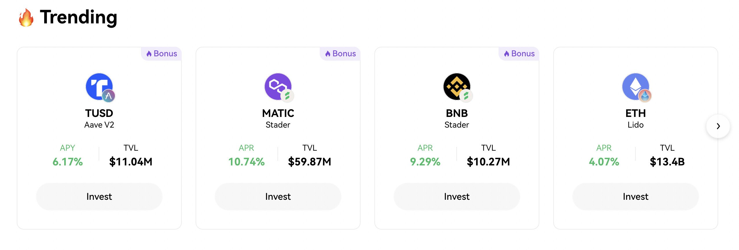 用戶可以搜尋他們目前在OKX錢包中持有的加密貨幣,找到可獲得的最高APY。 OKX還配備了內建的代幣兌換工具,更不用說一個完整的NFT市場。