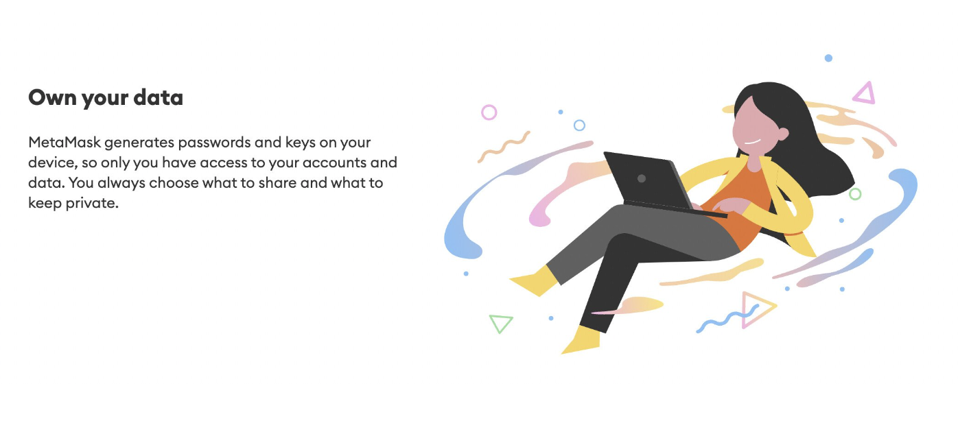 在建立錢包時,MetaMask 會為使用者提供一個 12 個單字的備份助記詞。只有使用者本身可以存取這個助記詞,確保 MetaMask 始終保持去中心化。錢包透過密碼保護,用戶需要在打開錢包時輸入密碼。