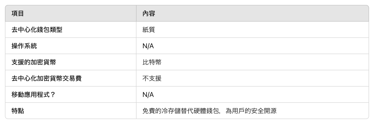這兩者都由QR碼表示,用戶可以將其列印到一張紙上。只要紙張保存在安全和私密的地方,加密資金就不會受到駭客攻擊。