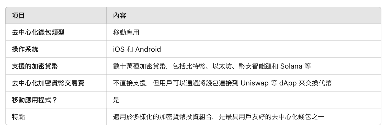 Trust Wallet也是一個去中心化錢包,適用於iOS、Android和Chrome瀏覽器擴充功能。