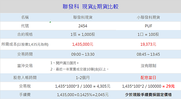以聯發科為例來說明股票期貨及股票手續費及交易稅的差異。