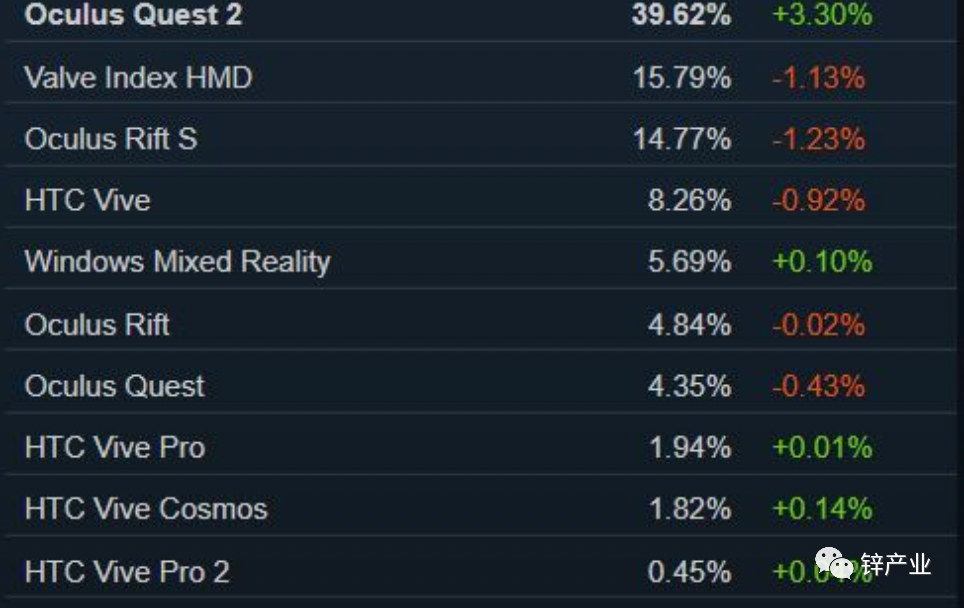 不過,當時盯著這一市場的不只有HTC,索尼、谷歌在早年間就已佈局,Facebook更是花巨資買來了當時業內頗負盛名的VR團隊Oculus。因此,HTC在VR領域的優勢沒能持續多久,尤其在Oculus被收購後,HTC的市場份額開始一再遭受擠壓。據Steam平台在2021年12月公佈的一份統計數據顯示,使用Oculus Quest 2的用戶佔達到比近40%,而使用HTC Vive的用戶佔比僅剩8.26%。要知道,在2016年的那波VR熱潮中,HTC也曾獨占過30%以上的市場份額,如今已是輝煌不再。