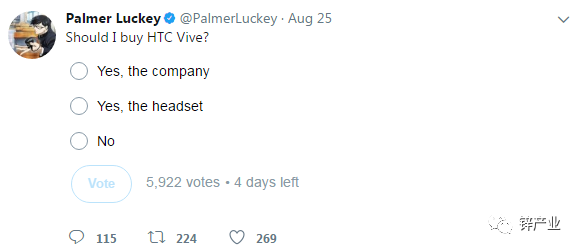 這個消息一經傳出,為整個VR行業帶來了第二春,卻也讓Facebook再次成為HTC在元宇宙這條路上一個繞不開的勁敵。 Facebook和HTC較勁由來已久,就在四年前,2017年8月的某天,Facebook旗下Oculus創始人Palmer Luckey在推特上還曾發布過一條“我應該買下HTC Vive嗎?”的意見徵集,公開戲謔HTC。