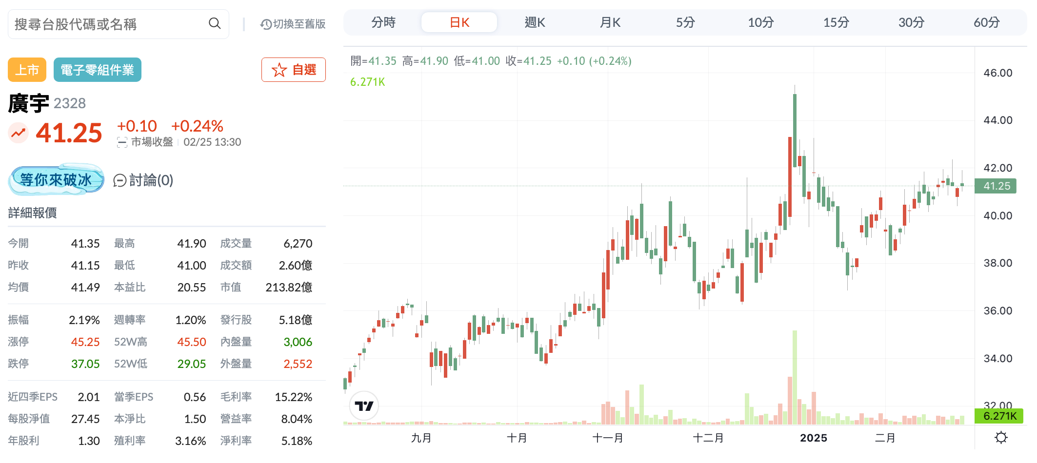 除了毛利提升之外,公司預估2025年可望回到2023年的營收水準(約250億元),其中AI伺服器及交換機線束將成為主要成長動能,有鴻海做後盾及「轉單支援」,使廣宇能快速切入AI伺服器、通訊等多元領域。