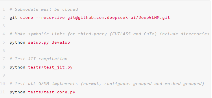 下面程式碼是DeepGEMM項目的安裝和測試指南。