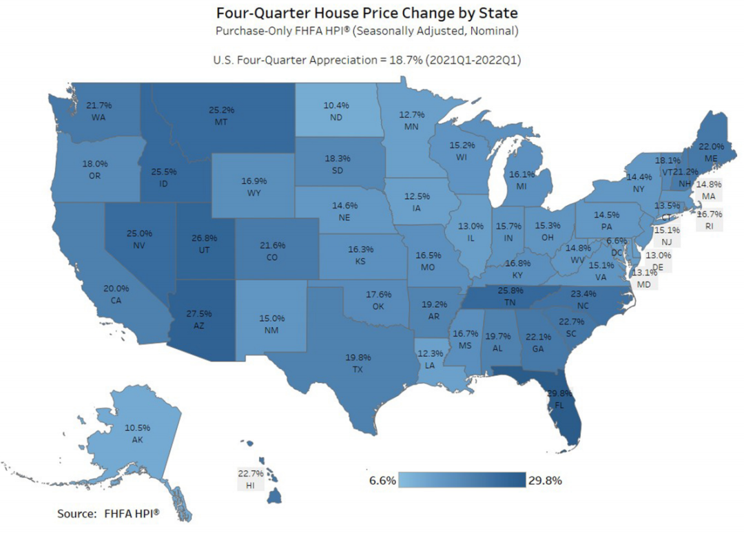 加利福尼亞、內華達、猶他等16個州的漲幅,也都超過了20%。
