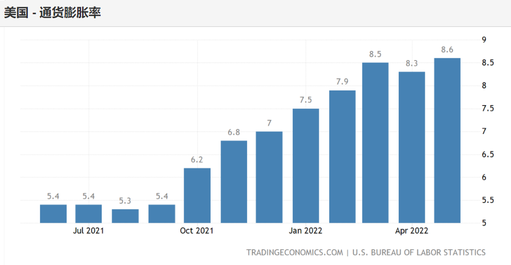 8.6%的通膨率,連續三個月都在8%以上,創40年來新高。