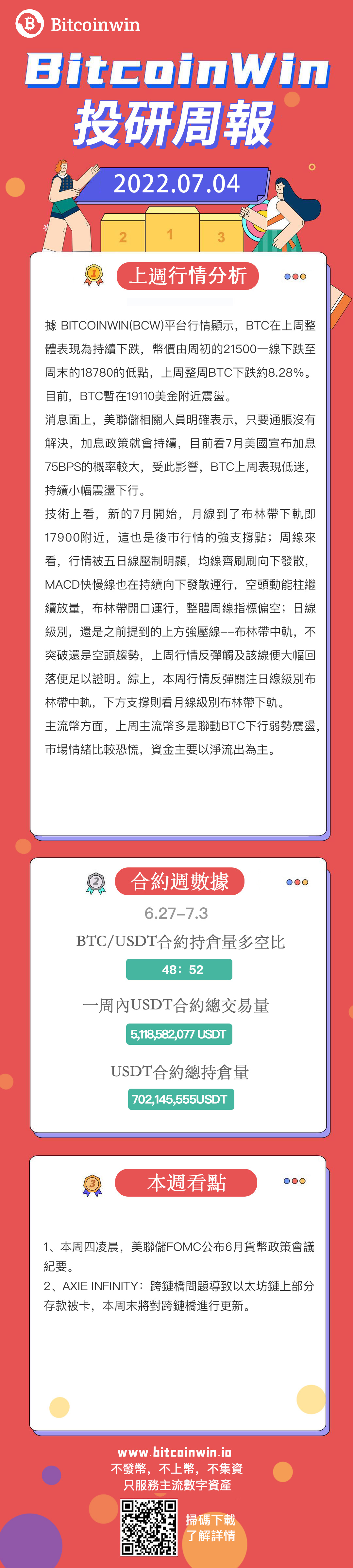 Bitcoinwin比特幣投研週報:周線及均線持續下跌,布林帶中軌壓制