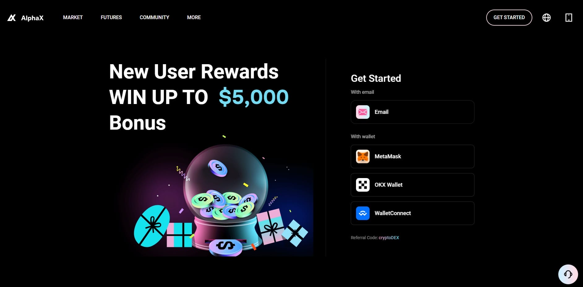 AlphaX 是一個去中心化交易所(DEX),在加密衍生性商品交易領域提供獨特的隱私性、安全性和強大的交易工具。該平台支援超過200種交易對,包括比特幣和以太坊等主流幣種,以及DeFi和 meme幣等小眾類別。