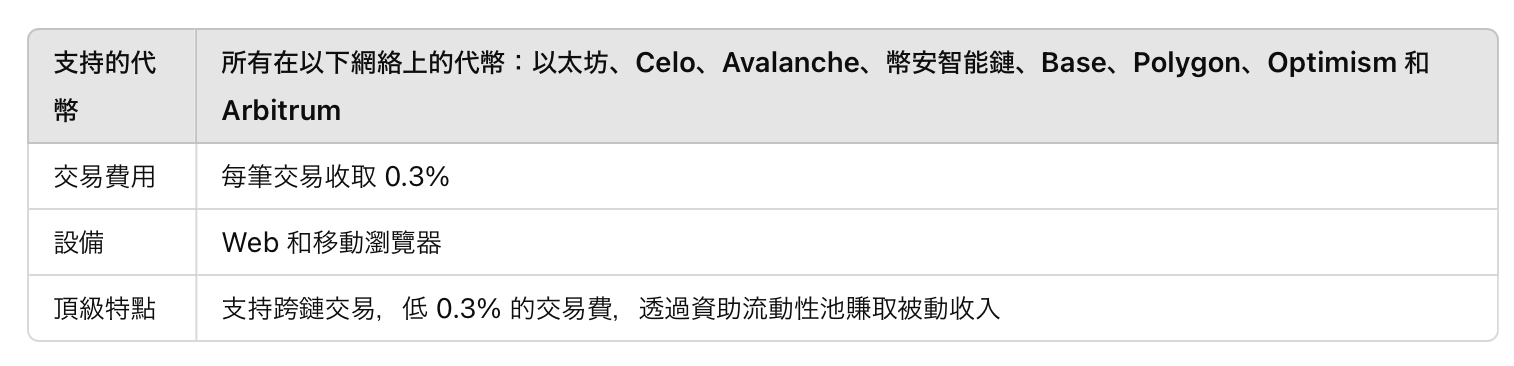 不過,如果您選擇的交易對沒有足夠的流動性,您可能會遇到滑點。這意味著在完成交易時可能會得到不利的價格。就費用而言,Uniswap每筆交易收取0.3%的費用。這相當於每交易1000美元只需支付3美元的費用。除了加密貨幣交易,Uniswap也支援被動收入工具。