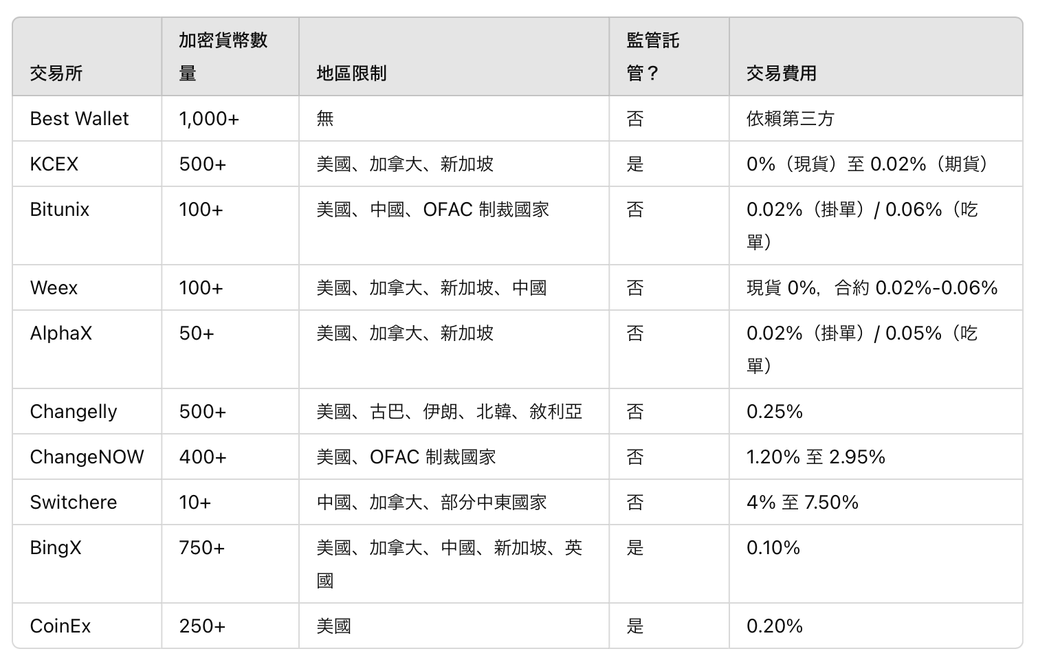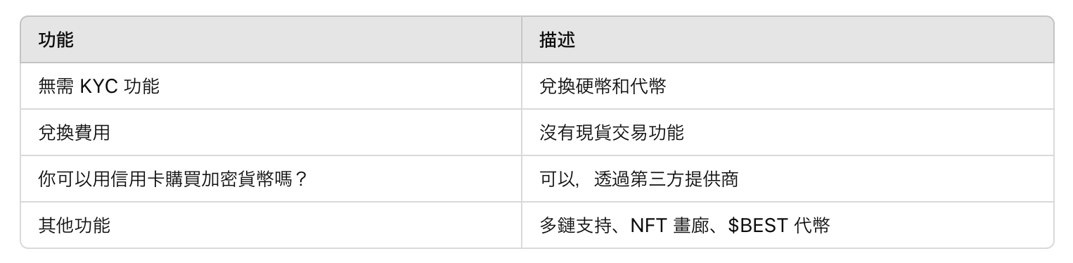 本指南已根據安全性、支援的市場、費用和其他關鍵指標為您排名了最佳的無KYC加密交易所。總的來說,我們的首選是Best Wallet。