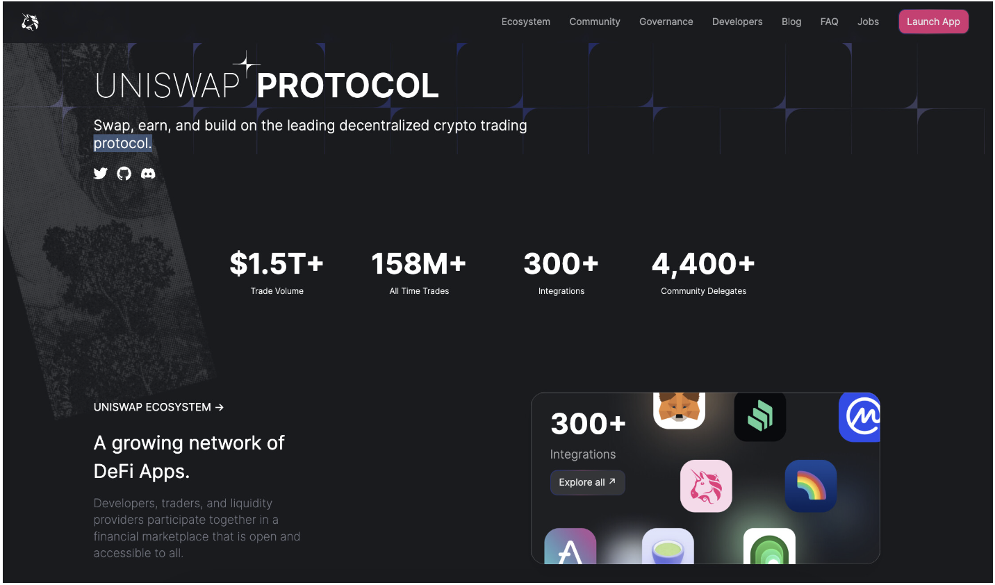 此外,Uniswap在進行交易時使用自動做市商(AMM)技術。簡而言之,這意味著您可以在不需要另一位市場參與者的情況下交易加密貨幣。這是因為Uniswap的交易透過流動性池完成。這使您能夠立即和順暢地購買或出售成千上萬種加密貨幣。