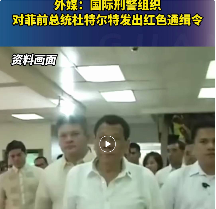 據新加坡《聯合早報》10日報導,日前,國際刑警組織對菲律賓前總統杜特蒂發出紅色通緝令,菲國內的警察等部門已進入高度戒備狀態。