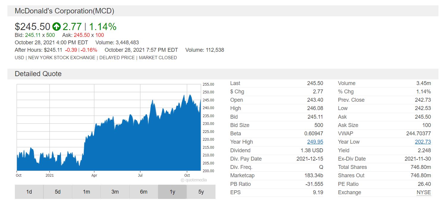 就在漲價消息傳出前夕,麥當勞發布最新業績,今年第三季度的營收為62.01億美元,同比增加14.6%;第三季度的凈利潤為21.5億美元,同比增加5%,雙雙超出市場預期。財報公佈後,麥當勞股價連續飆升,2個交易日漲超漲超3.8%,最新總市值回升至1833億美元。