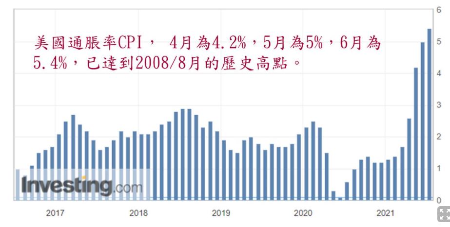 其實在今年9月美國的通膨率已飆升至歷史高位。 據美國勞動統計局數據,美國9月CPI年率升至5.4%,超出市場預期,已經觸及到了2008年以來高點。