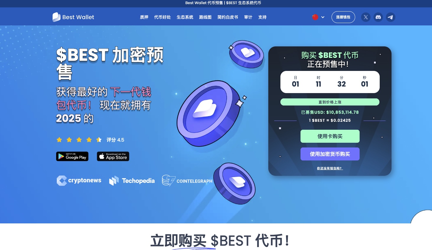 作為 Best Wallet 生態系統核心,$BEST 代幣已在 ICO 階段籌集超過1100萬美元,展現出極高市場吸引力。持有 $BEST 用戶可享受: