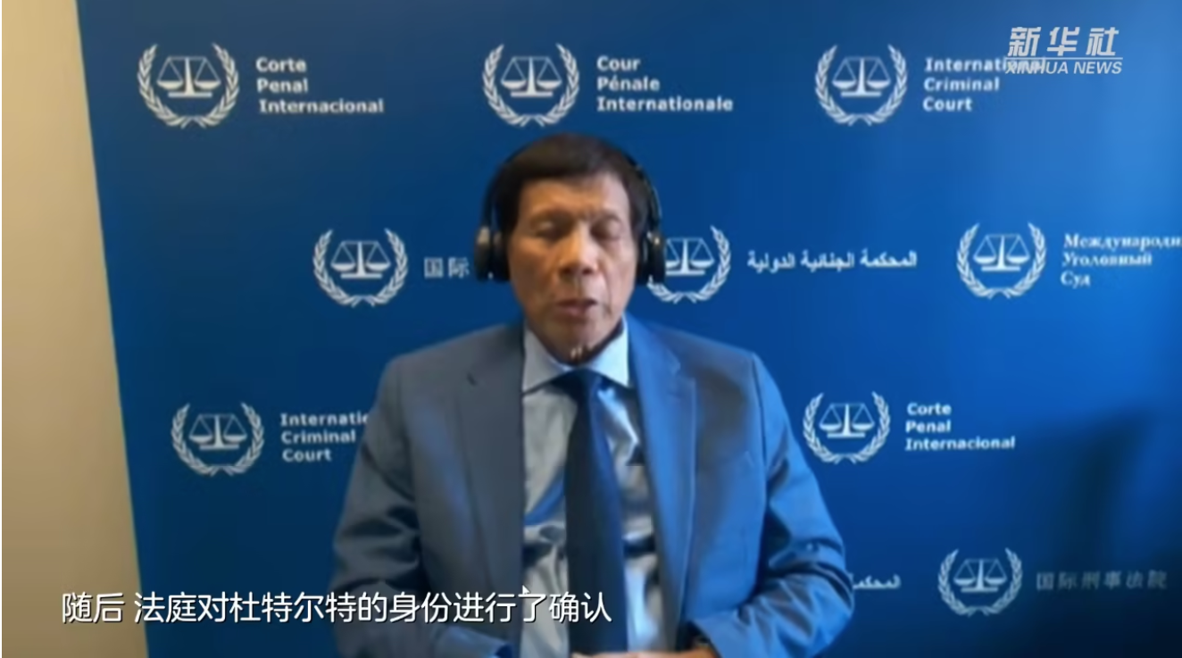 菲律賓前總統杜特蒂14日下午透過視訊連線的方式參加了在荷蘭海牙國際刑事法院舉行的首次聆訊。
