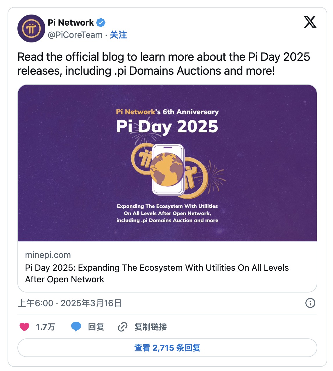 Pi 域名的推出為 PI 代幣增加了一個新的應用場景,並強化了其價值主張。