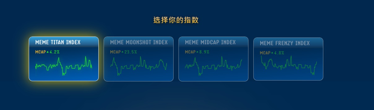 Meme Index 設有四種不同的Meme 資產籃子,每個都針對不同風險承受能力的投資者量身打造。