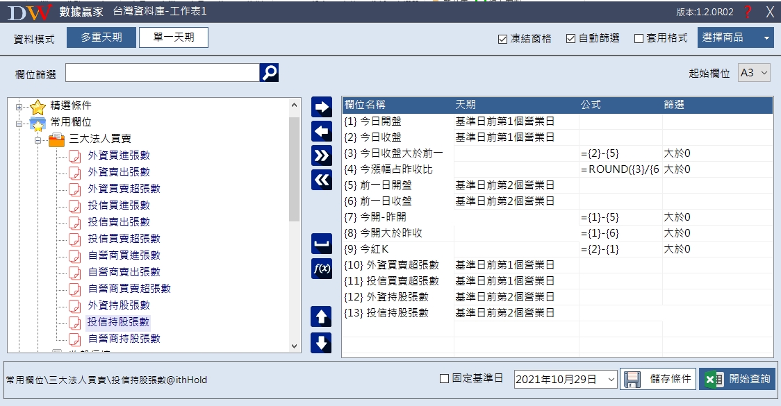 不過透過EXCEL再快速篩選條件(例如:外資+投信聯手買)已經可以加速我盤後挑選股票了,最重要的是我想運算什麼欄位,挑選後一鍵更新,不蓋你資料就「#秒速出來」,不會一直轉圈圈要等很久,喜歡研究財經數據的人可以去下載來玩玩