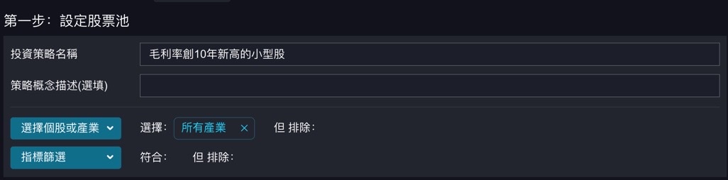 首先,第一步設定股票池中,選擇所有上市櫃的公司