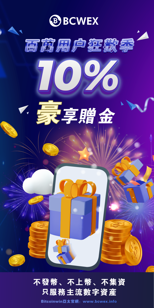 首次在Bitcoinwin(BCW)充值,可獲得10%贈金,最高5,000 USDT。