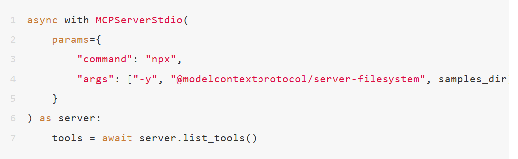 當LLM需要呼叫來自MCP伺服器的某個工具時,SDK會相應地在該伺服器上執行call_tool()函數。
