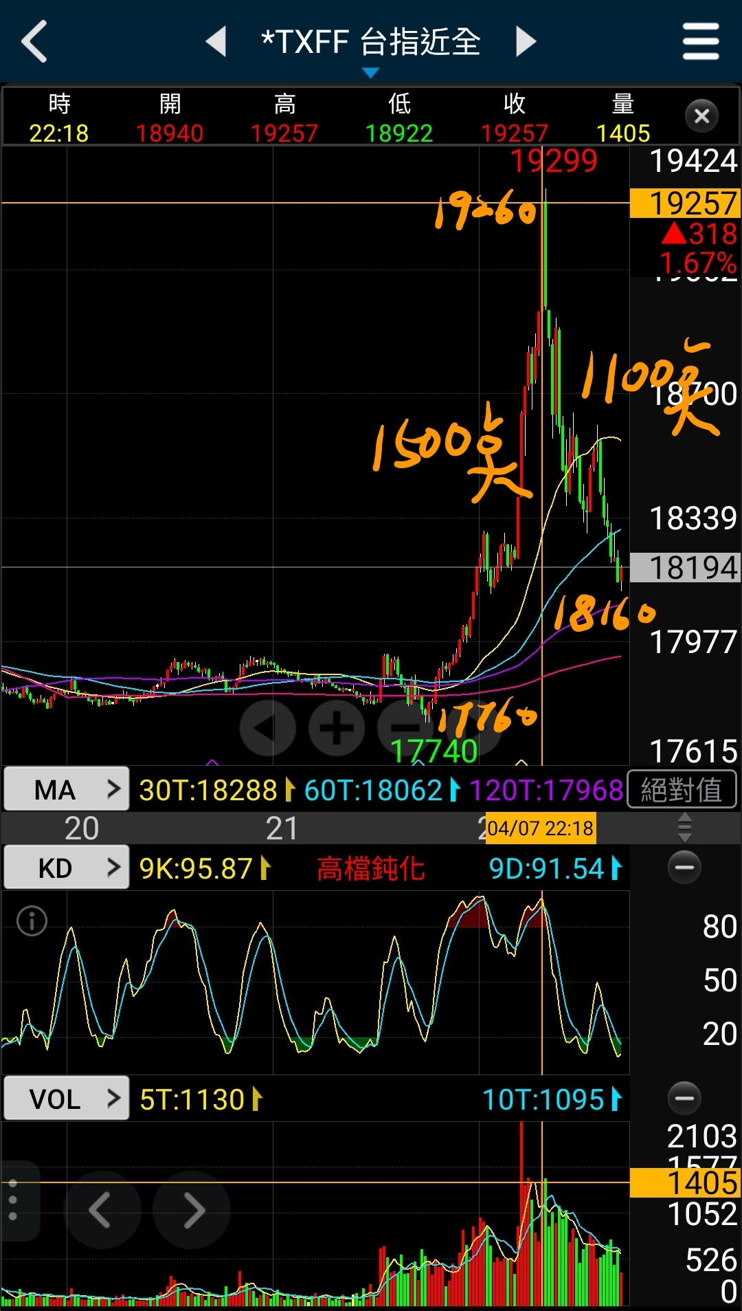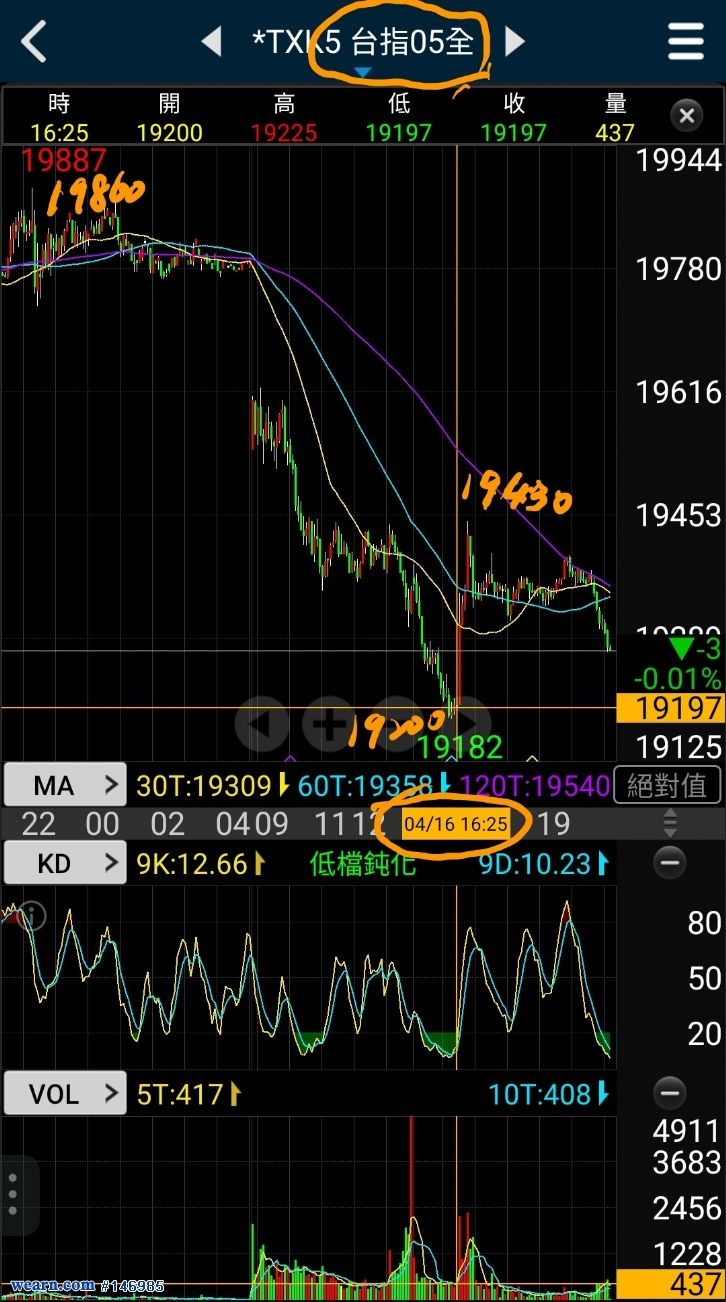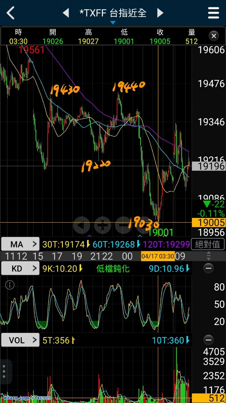 昨天夜盤台指跌破19200後已震超過千點(19200/19430/19220/19440/19030)😏,