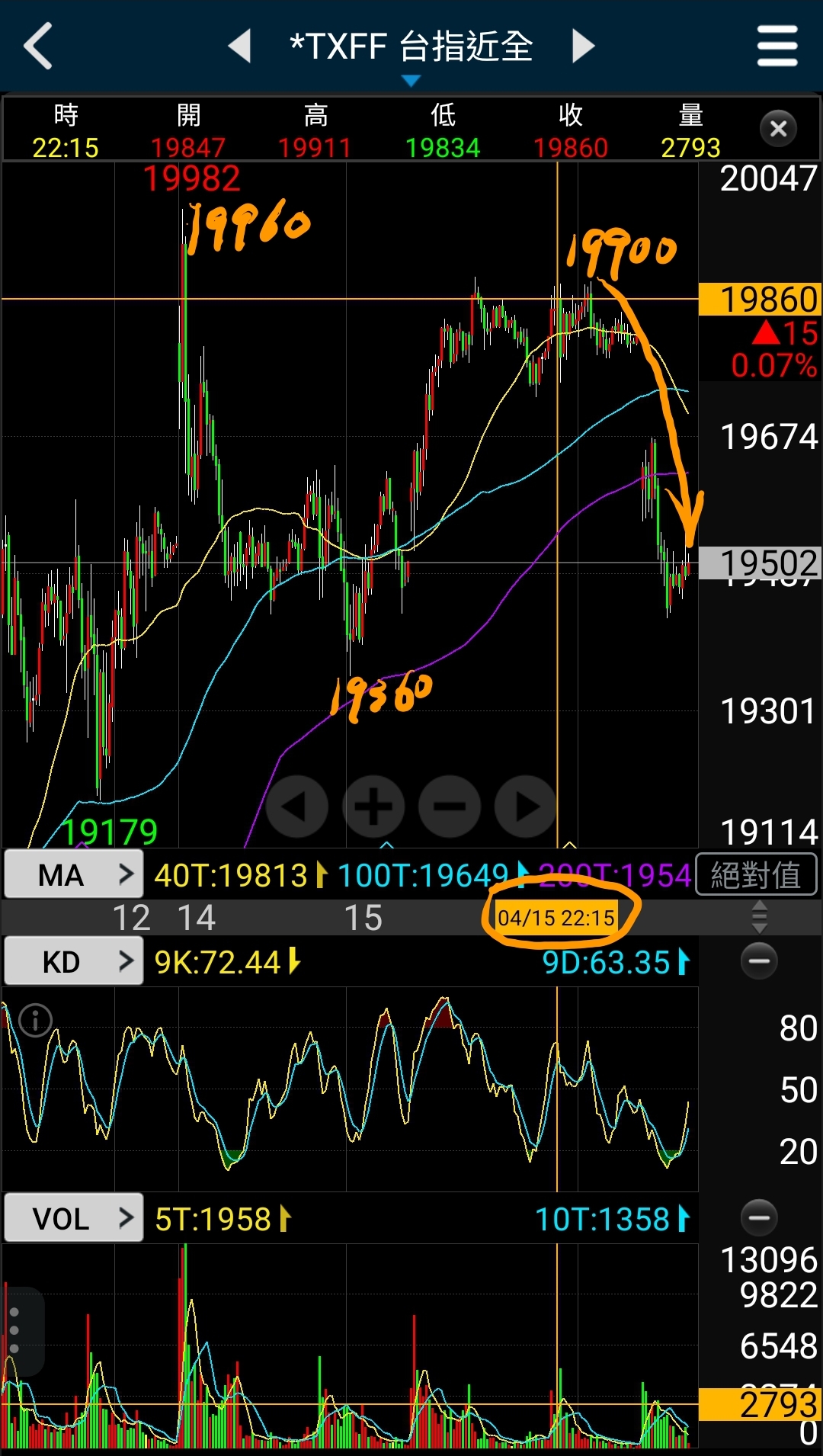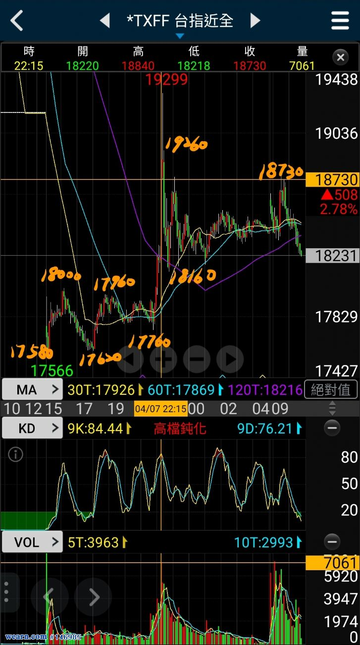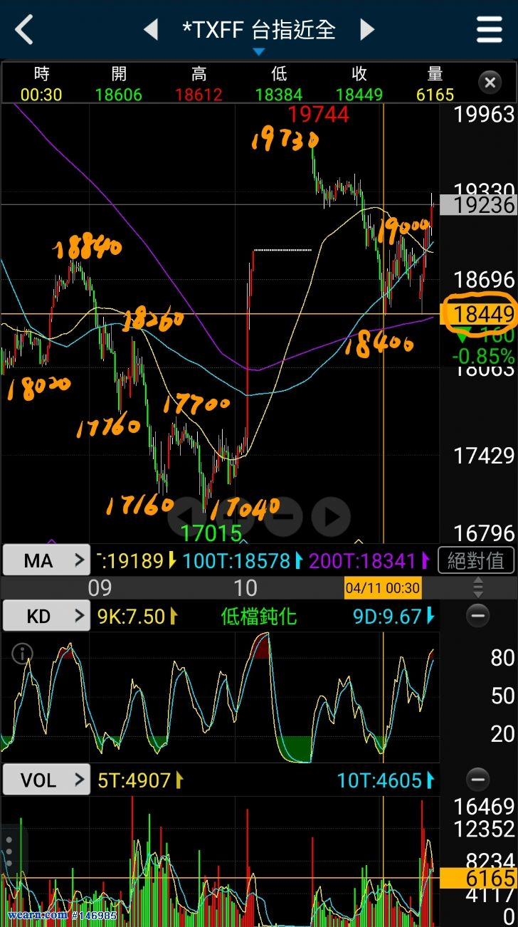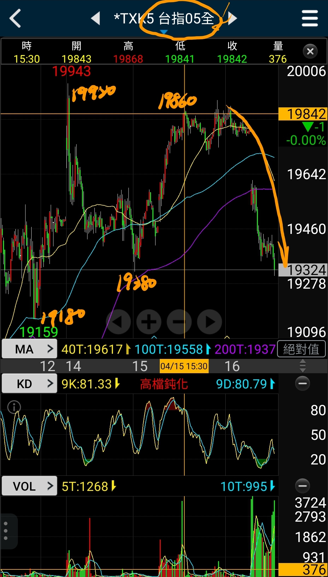 昨天夜盤台指跌破19200後已震超過千點(19200/19430/19220/19440/19030)😏,