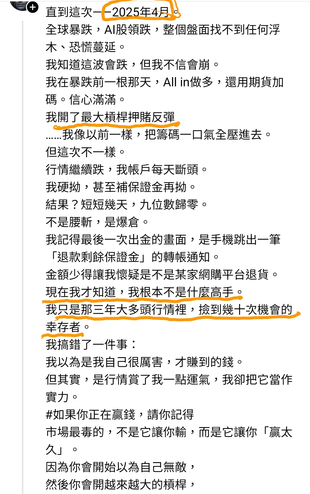 “少年股神”在四月初爆艙後,threads上的自白~😅