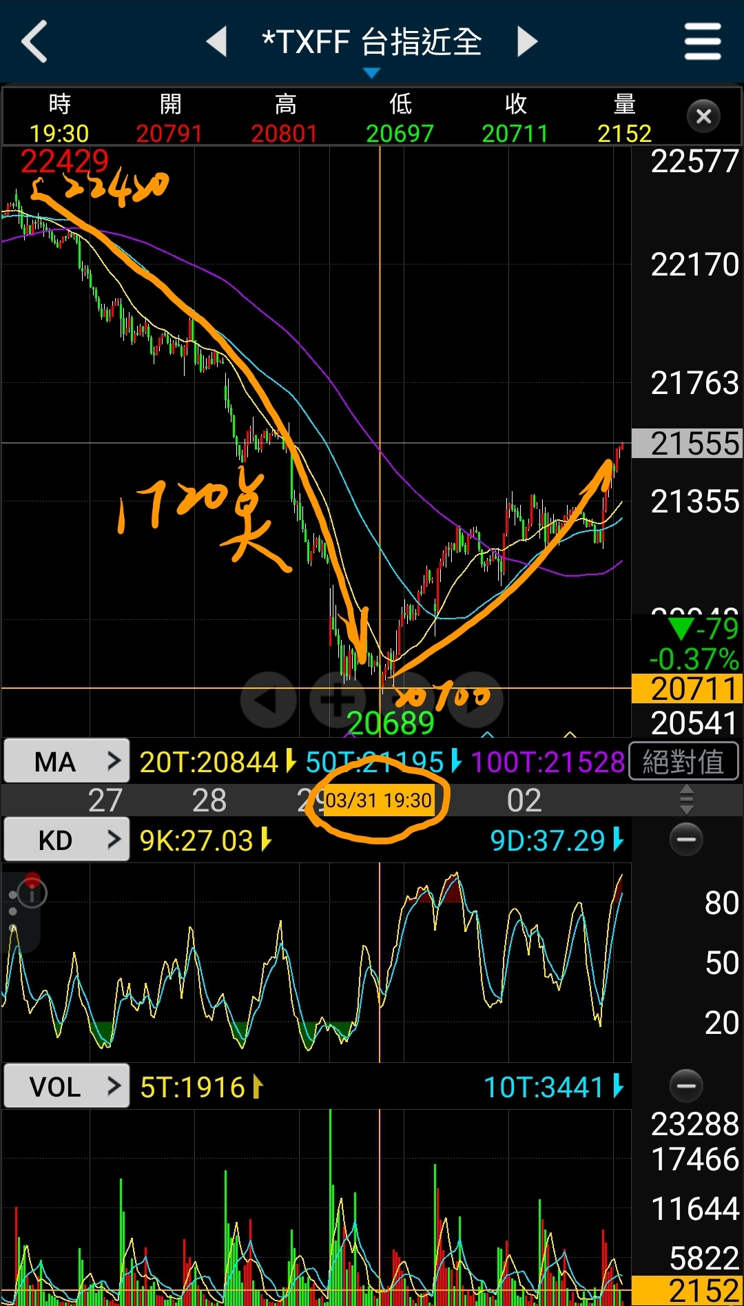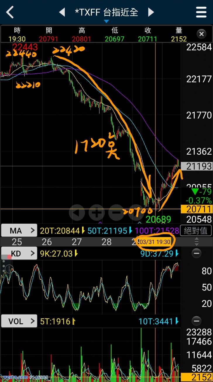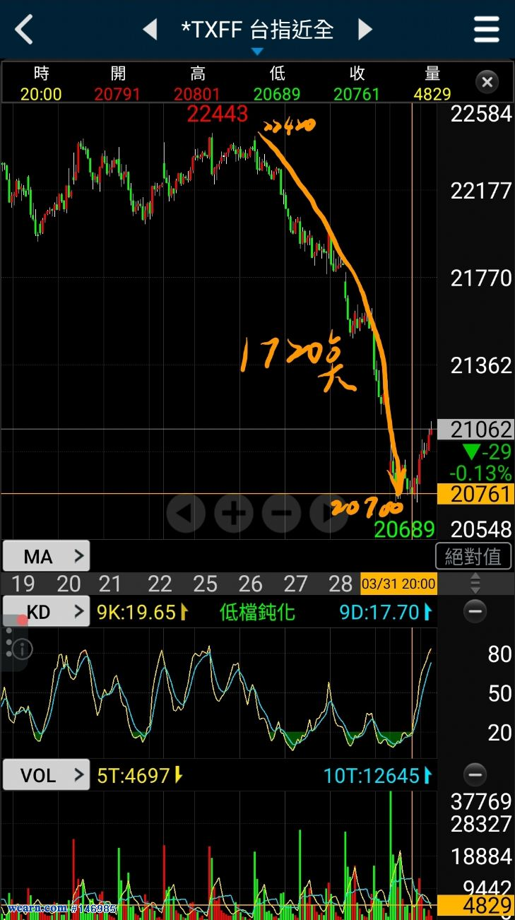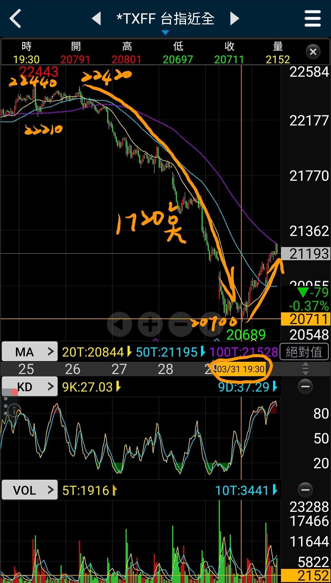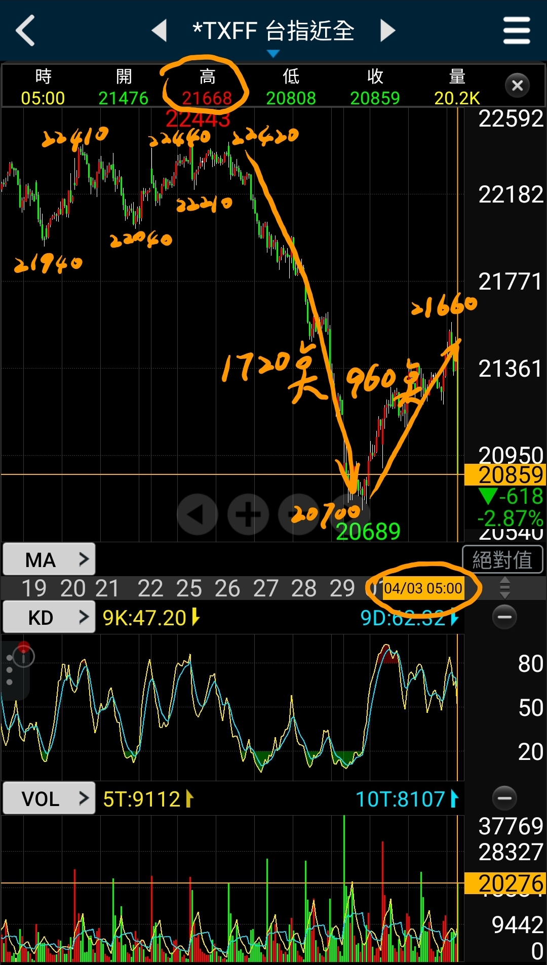 台指22420/摜破20700收割1720點價差後😎,20700/21370又有超過600多點價差,😂