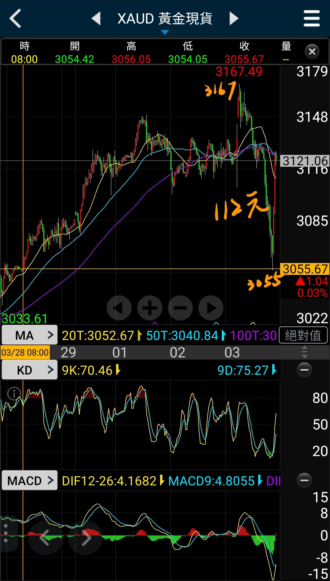 黃金3167急跌超過百元摜破3055後😂,形成乖離又急拉,也隨股市迎來大修正!😰