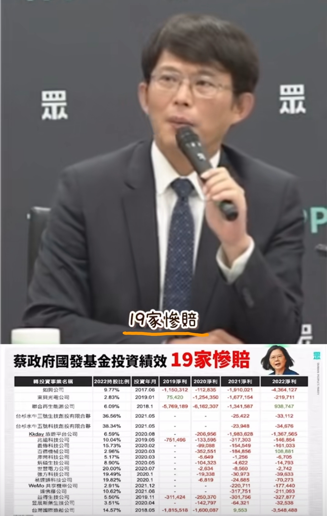 黃國昌:國發基金投資的績效賺錢只有6家,其他有19家慘賠!🥵